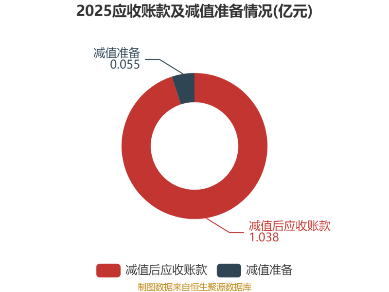 从应收账款账龄结构来看,截至2025年末,公司账龄在1年以内的应收账款余额为1.09亿元,较上年末下降1362.18万元,占应收账款总额比例为99.99%,较上年末下降0.01个百分点。