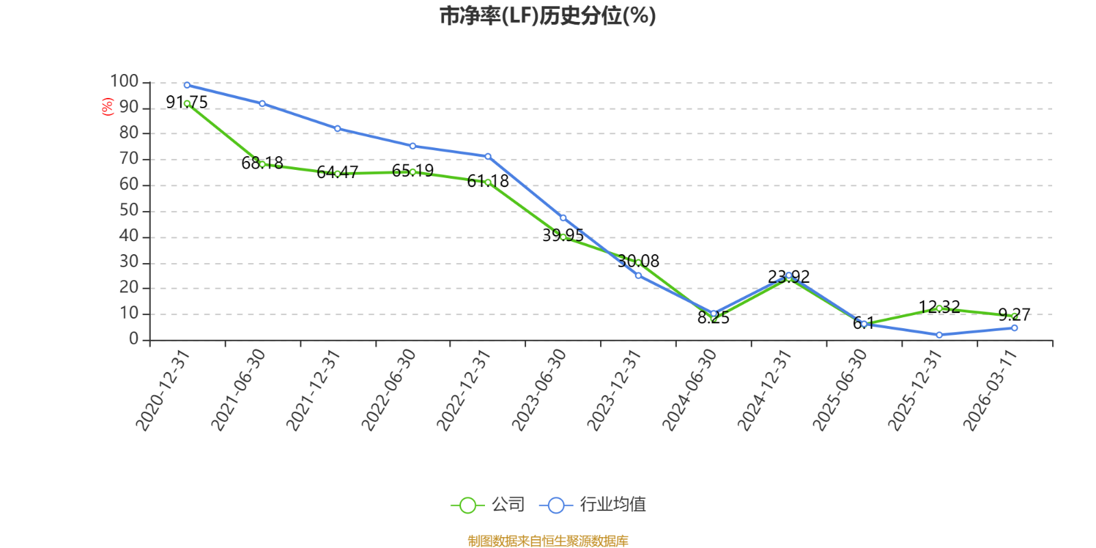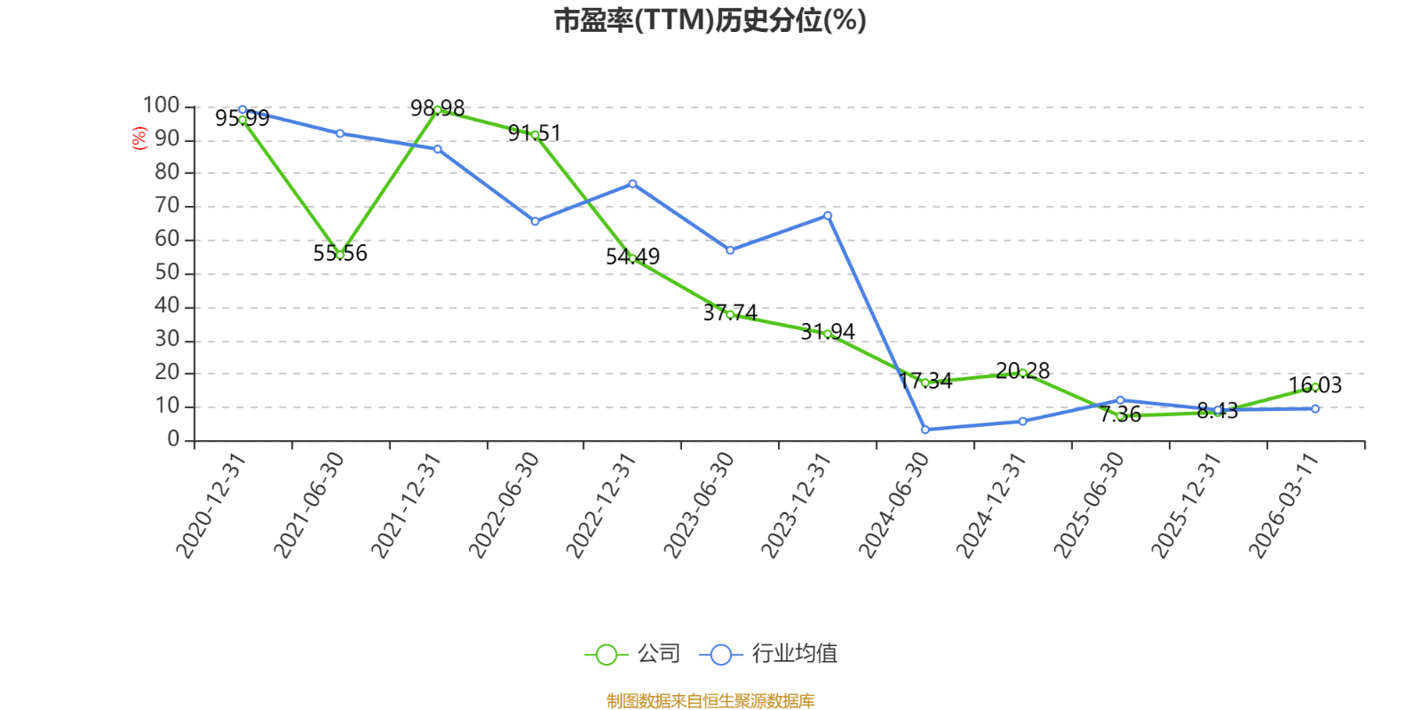 市盈率、市净率为负时,不显示当期分位数,会导致折线图中断。