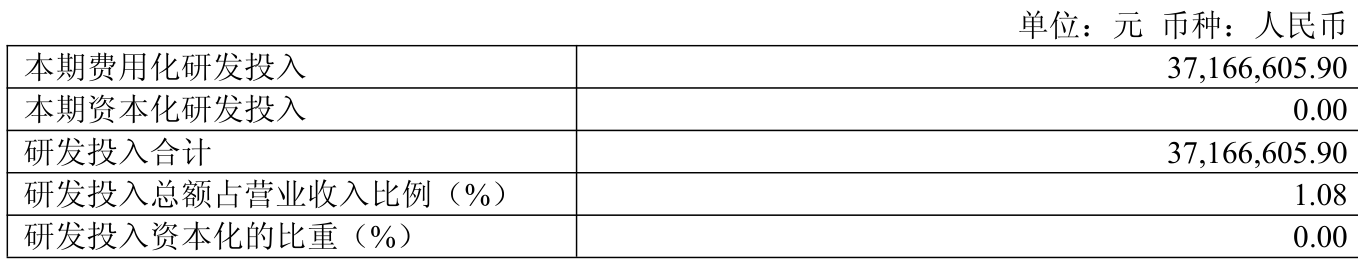 2025年全年,公司研发投入金额为3716.66万元,同比增长3.64%;研发投入占营业收入比例为1.08%,相比上年同期上升0.05个百分点。此外,公司全年研发投入资本化率为0%。