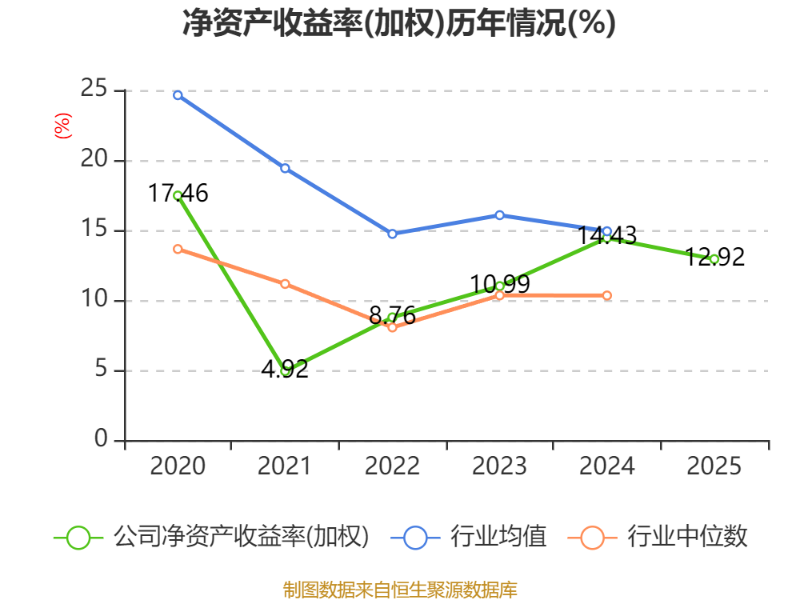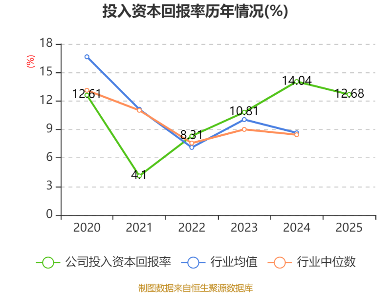 数据显示,2025年公司加权平均净资产收益率为12.92%,较上年同期下降1.51个百分点。公司2025年投入资本回报率为12.68%,较上年同期下降1.36个百分点。