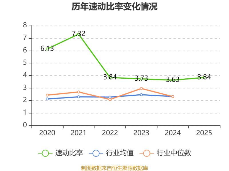 2025年,公司流动比率为4.07,速动比率为3.84。